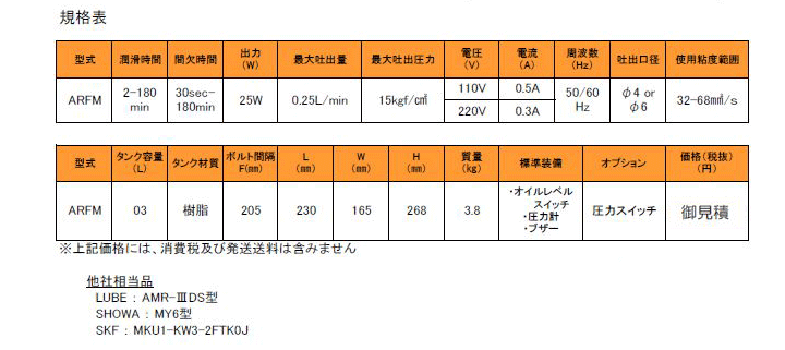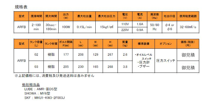 HOME > 自社製品 > 工作機械・専用機用潤滑油供給ポンプ 工作機械・専用機用潤滑油供給ポンプ ☆タンク容量の選択可能な(廉価タイプ)ARFB ☆最大吐出量=0.25L/min(低電力・大吐出量)ARFM ↑ PAGE TOP